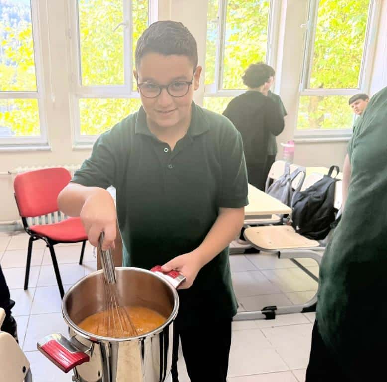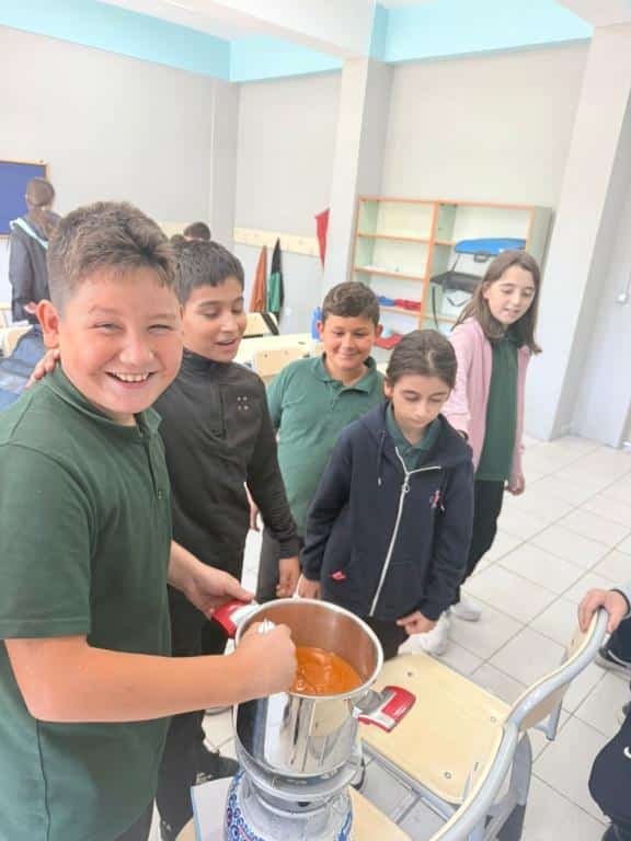 Bugün Türkçe öğretmenimiz Gamze Değirmenci ile birlikte 6. Sınıf öğrencilerimiz kültürümüzün büyük bir parçası olan tarhana çorbası pişirerek geleneklerimizin köklerine yolculuk yaptılar.